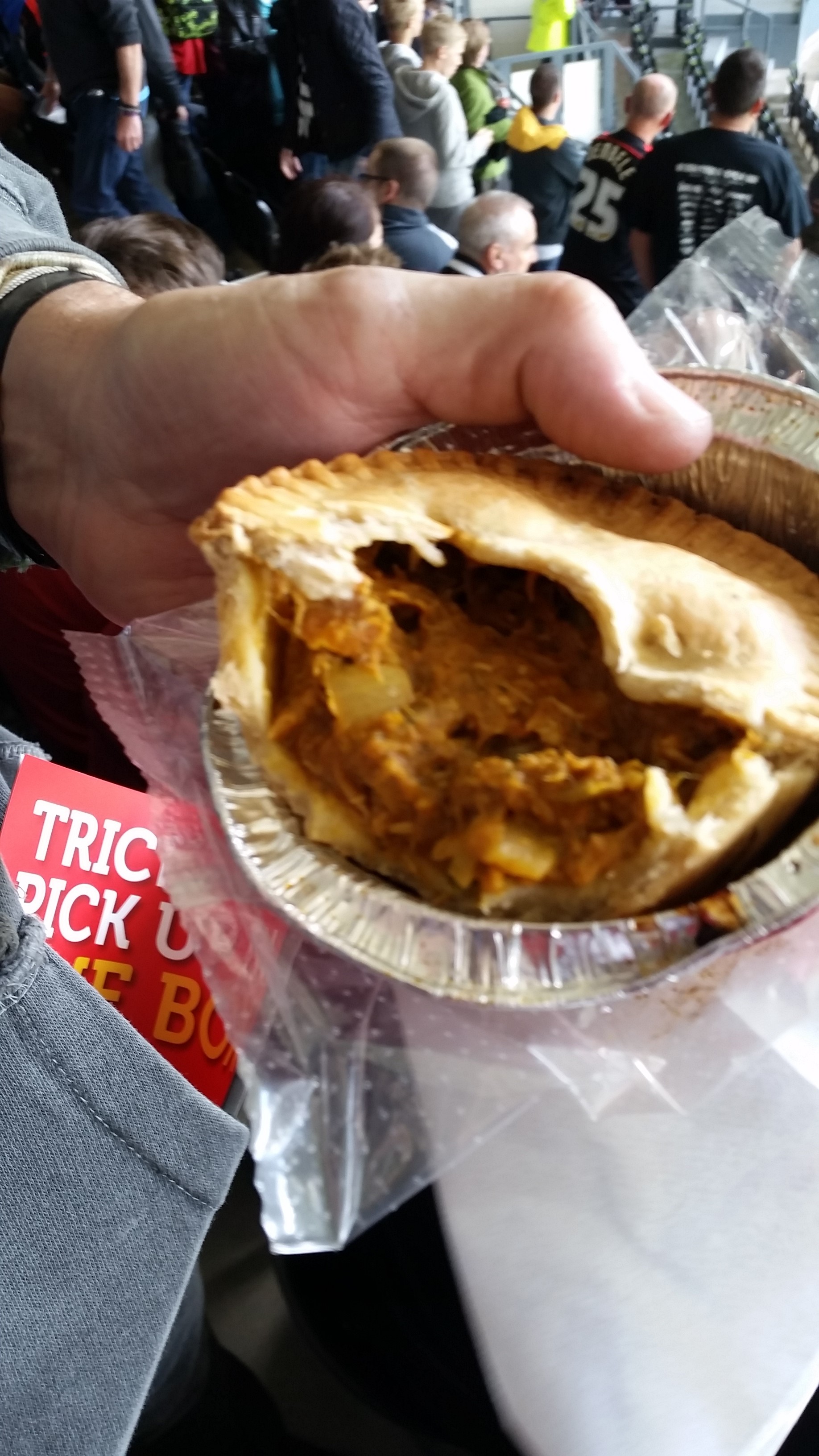 Comments: The season hasn’t started ideally for me or my beloved, for the time being anyway, Fulham. Whilst Carry On Fulham has run into its second season with Penfold directing a new band of merry mishaps, I’ve been left underwhelmed by a constant stream of tedious Holland’s pies. My joyous dream that pies in the Championship would be uniquely gorgeous to each club has been shattered already, it’s looking increasingly like whether it’s Derby, Ipswich, Rotherham or Brentford I’ll be ill fated to plant my face square down into the mucky bottom of yet another Holland/Pukka Pie. Of course, the light at the end of the tunnel is the away trip to pie Mecca Wigan with their nightclub-esq bar under the away end in the DW.