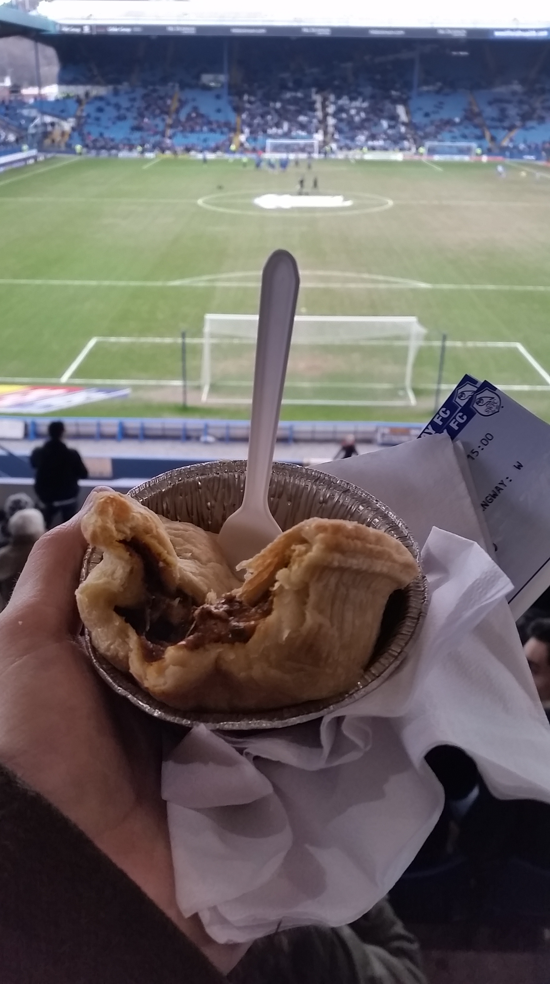 Comments: On the 1979 song ‘Jumping Someone Else’s Train’ by The Cure, perpetual bad hair day Robert Smith wails “Everyone’s happy/They’re finally all the same/’cause everyone’s jumping/Everyone else’s train”. For all we know, maybe Smith was lamenting the fact that every ground in the Football League is content with recycling the same bloody pies. Boys don’t cry but I was certainly reduced to a withering sigh when I spied another Phukka Pie in Hillsborough’s decadent concourse. I’d had enough, no more generic Pukka. This was my great stand, my purposeful protest to validate my existence. I’ll chain myself to that hapless clutz Fernando Amorebieta’s legs until all Championship clubs agree to manufacturer/bake their own pies. At least it would stop Amorebieta from playing, good enough.