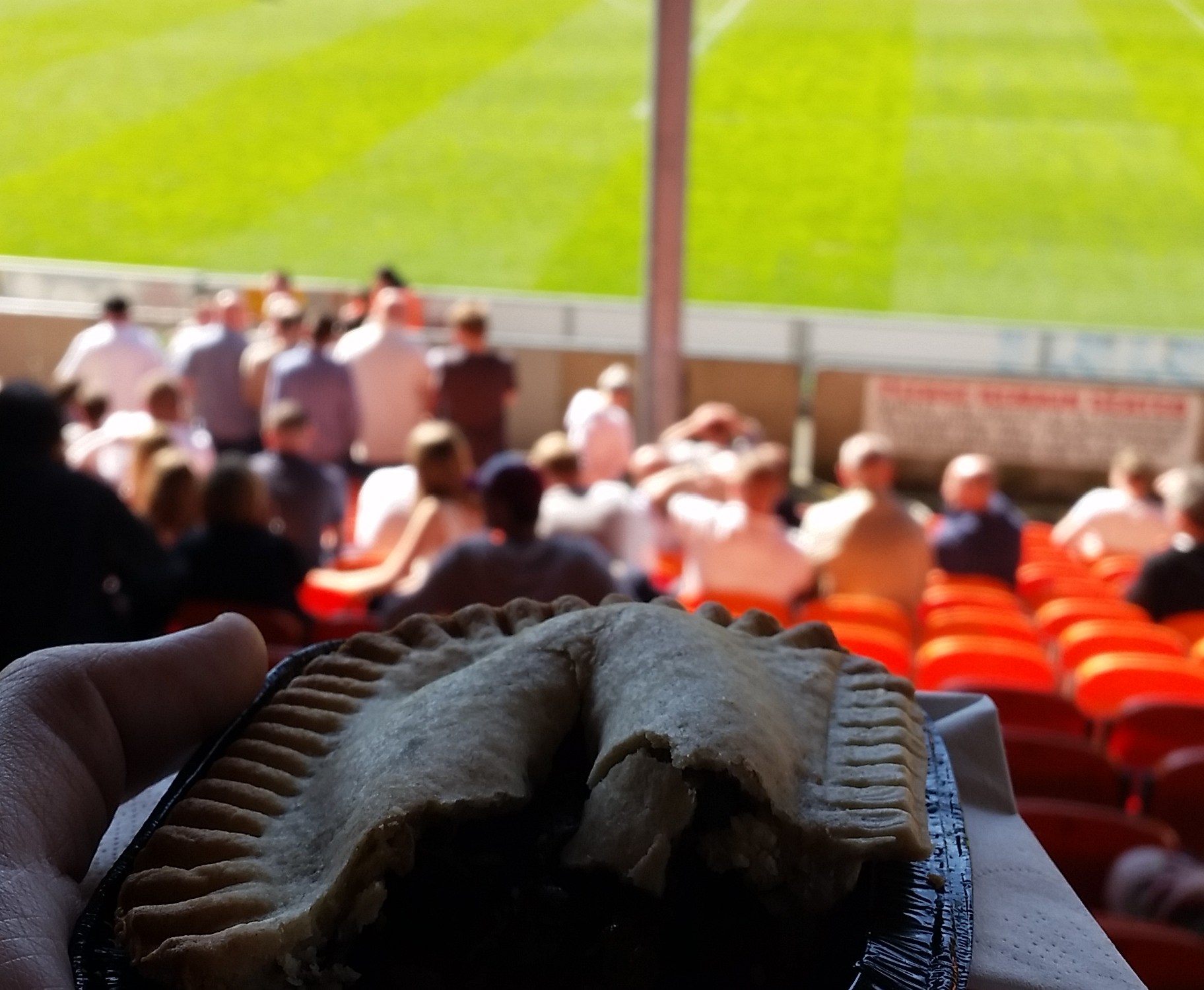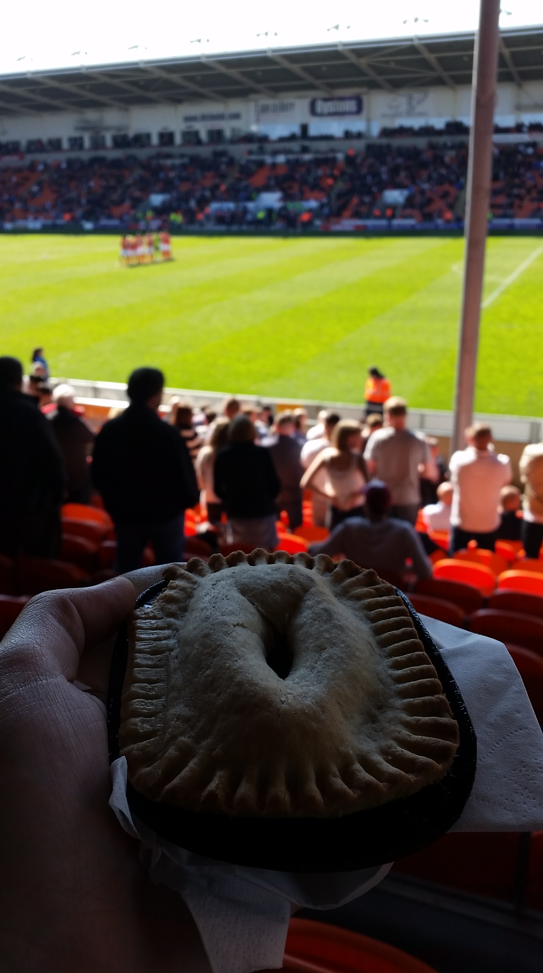 Blackpool FC aren’t in a much better state than the town; already relegated, with fans waging war on the owners and a pitch that resembles No Man’s Land. I was relieved to find that not only did Blackpool have pies, but that they tasted marginally better than a slab of teeth shattering Rock. Despite strongly resembling a cat’s arsehole, not to mention being filled with a lumpy brown liquid, the steak pie was a tasty little treat. The pie could have been a tad bigger, a tad hotter, steak a tad tastier and pastry a tad flakier, but then again it was a bargain at £2.50. Far from the most memorable pie of the season but at least a novel ground to end it in.